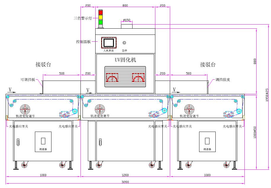 | 11、输送宽度:50~450mm | 12、输送速度:0~3m/min(触摸屏直接读数) |